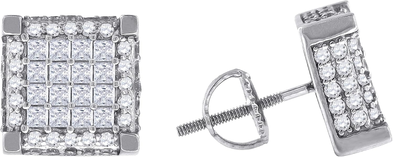 Sterling Silver Or Yellow-Tone Mens Princess Cubic Zirconia Square Stud Earrings