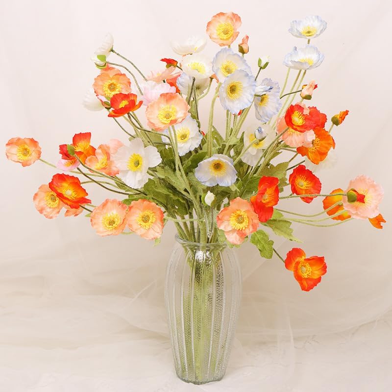 - Crafted from premium flannel, these silk poppies boast astonishingly lifelike texture, rich hues, and exceptional durability that won't fade over time.