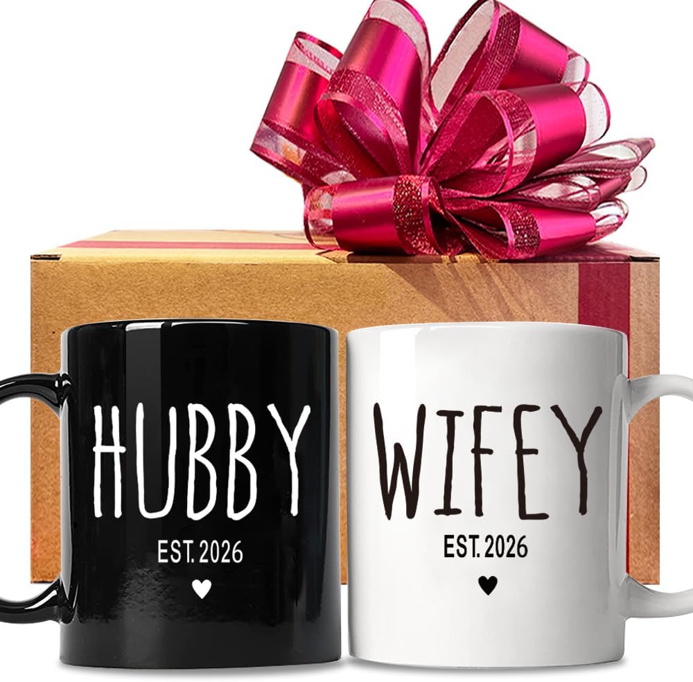 FALJIOK Est 2026 Hubby & Wifey Coffee Mugs Set, Wedding Gift for Couple, Bride Groom Mug Set, Newlywed Coffee Mugs Gift Set, Couples Coffee Mug Set, Mr & Mrs Bridal Shower Gift-93