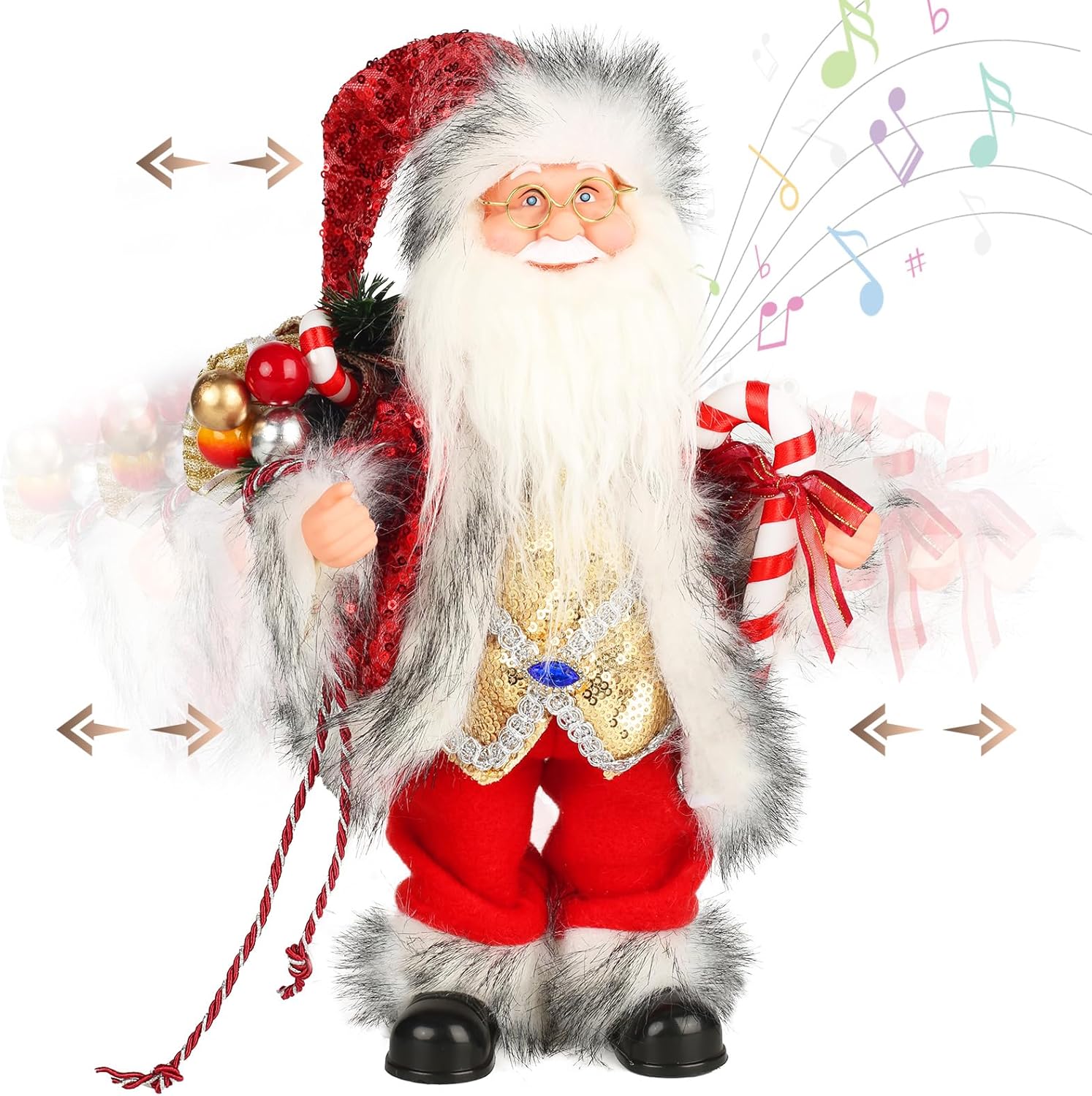 - 【Exquisite clothing & Gorgeous Decorations】 Compared to traditional electric santa,santa claus figure not only can sing and dance,but also is a high-end decoration made of high-end materials. A built-in musical function turns this Santa into more than just décor – it's an experience of sight and sound. Santa figures has smooth and dense whiskers,gorgeous clothes with sequins and sapphire."