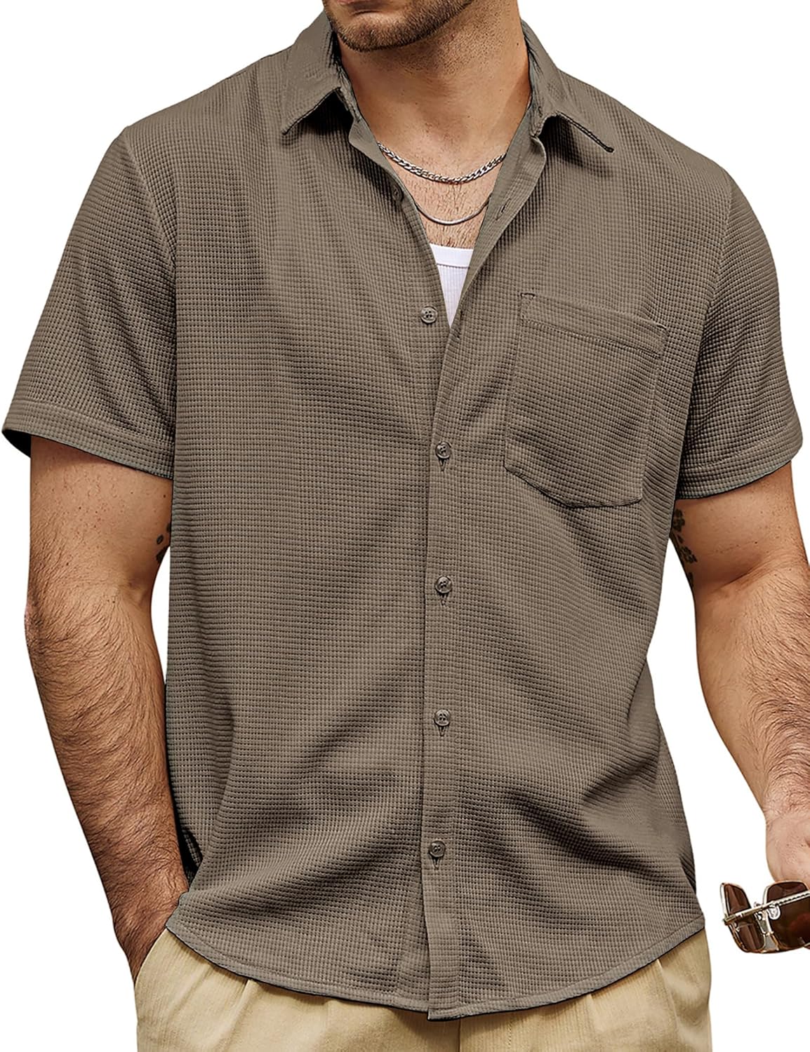 VATPAVE Mens Casual Waffle Shirt Short Sleeve Button Down Summer Shirts Loose Fit Beach Shirts