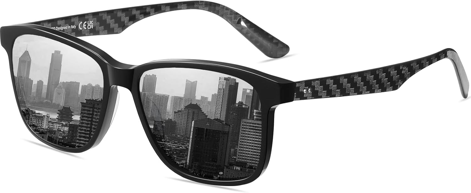 DUCO Rectangular Polarized Sunglasses for Men Acetate Carbon Fiber Sun Glasses Driving Fishing Golf UV400 Protection DC8330