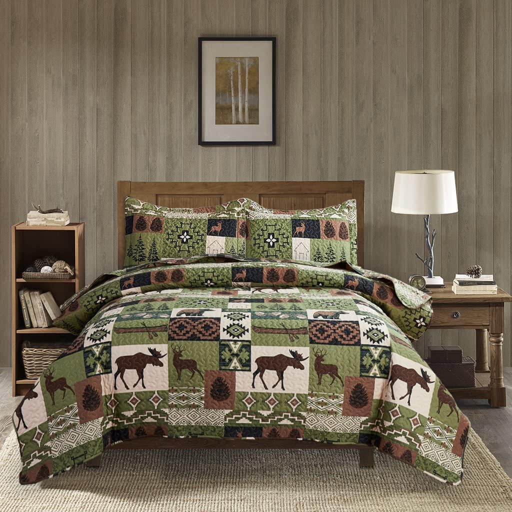 - SOFT &DURABLE MATERIAL: The queen size country cabin quilt set is made from top quality microfiber polyester material, double brushed on both sides for ultimate softness and comfort. Lightweight full/queen size quilt, breathable and warm when sleeping. Create you an easy and comfortable sleeping experience, help you enjoy a special and peaceful family day.