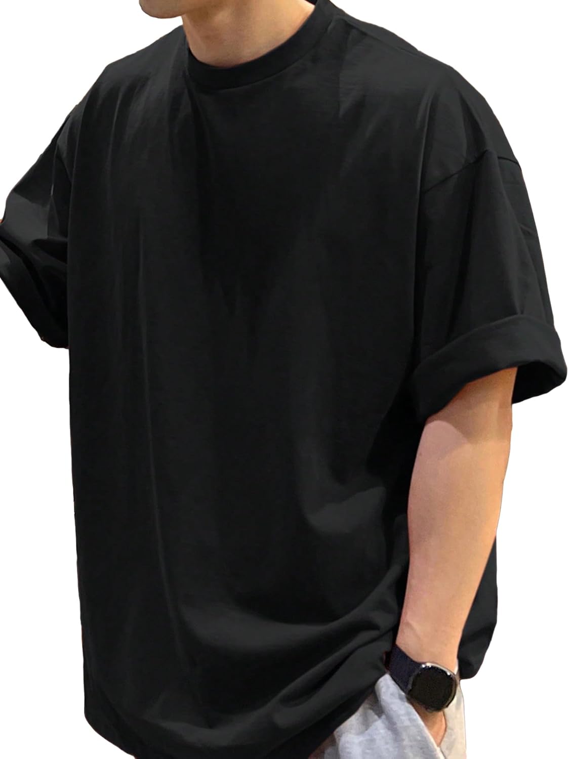 OYOANGLE Men's Fashion Short Sleeve Oversized Tshirts Workout Pullover Drop Shoulder Tee Shirt Solid Color Casual Tees