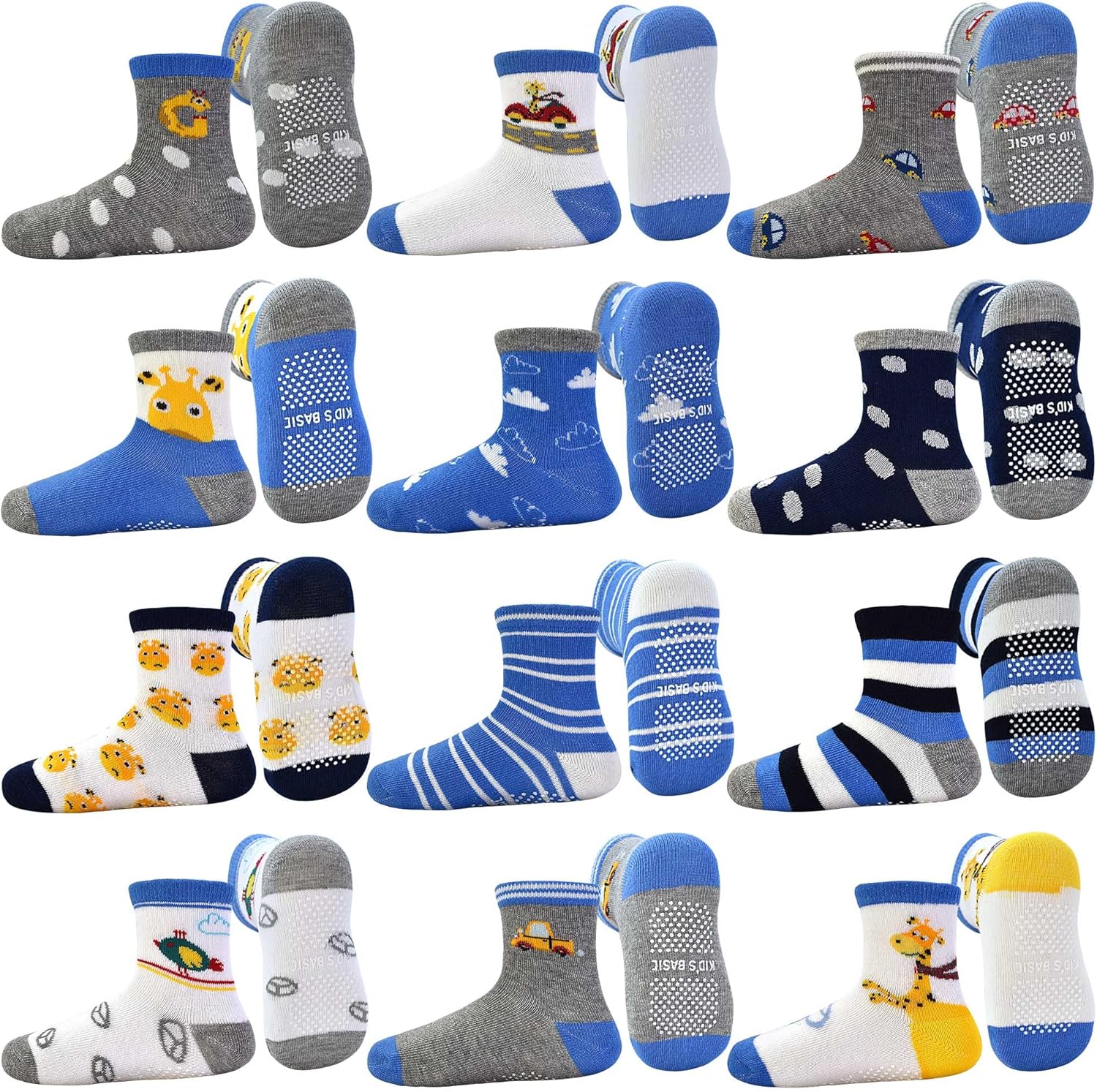 Tphon Toddler Baby Non Slip Socks Infant Anti Skid Socks with Grips 12 Pairs Crew Sock for 0-7 Years Kids Boys Girls