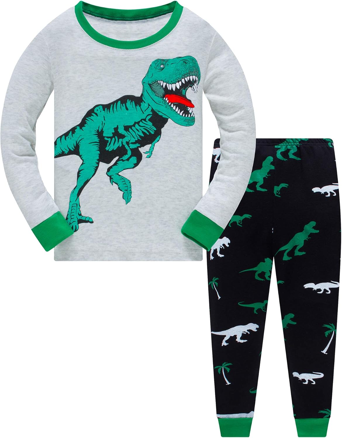 Popshion Little Boys Pajamas Sets Glow in Dark Dinosaur 100% Cotton 2 Piece Toddler Clothes Kids Pjs Sleepwear Size 2-10T