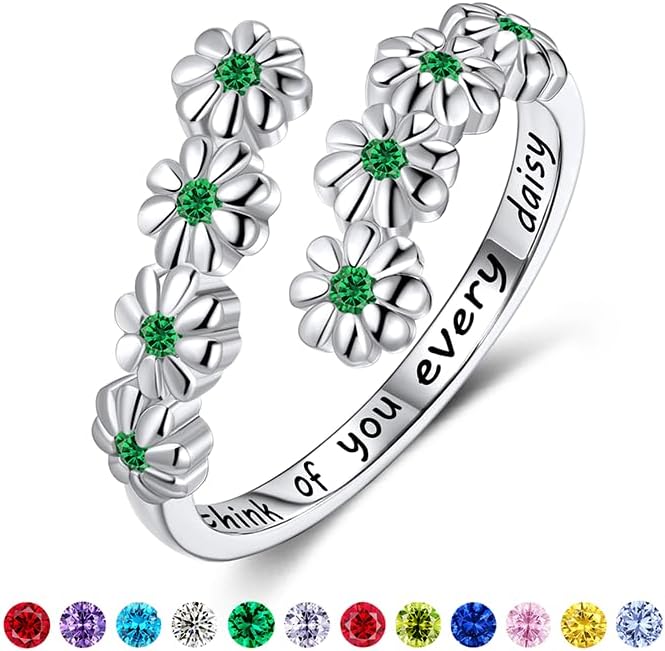LYTTMAB Birthstone Ring Daisy Ring Sunflower Ring For Women, Sterling S925 Silver Birth Flower Ring, I Think Of You Every Daisy Ring, Sunshine Ring Spoon Ring, Open Ring, Adjustable Ring