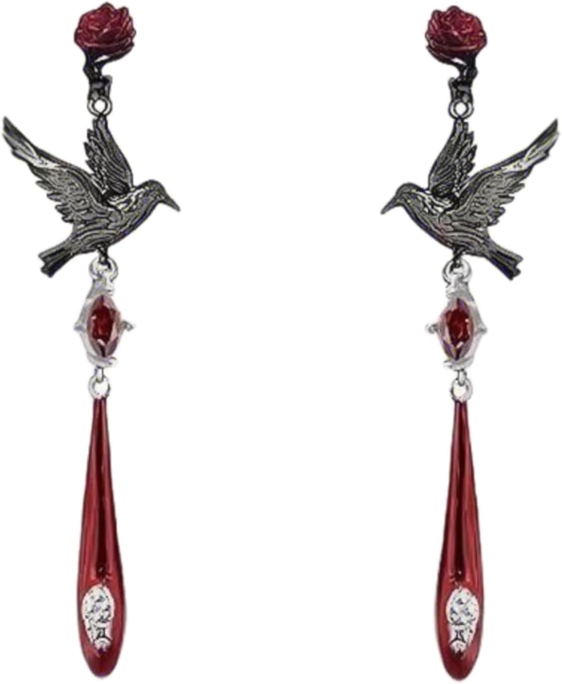 Hip Hop Style Gothic Crow Earrings - Red Dangle Pendant Earrings, Personalized Animal Jewelry, Fashion Women's Accessories for Party & Daily Wear