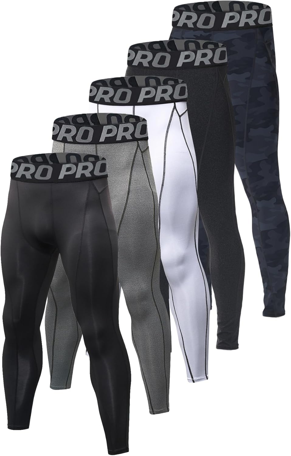 5 Pack Men's Compression Pants Camouflage Athletic Workout Leggings Running Tights Sports Basketball Baselayer