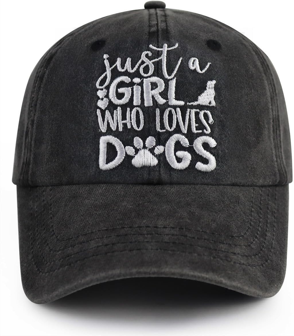 Just a Girl Who Loves Dogs Hat for Women, Funny Adjustable Embroidered Dog Mom Baseball Cap