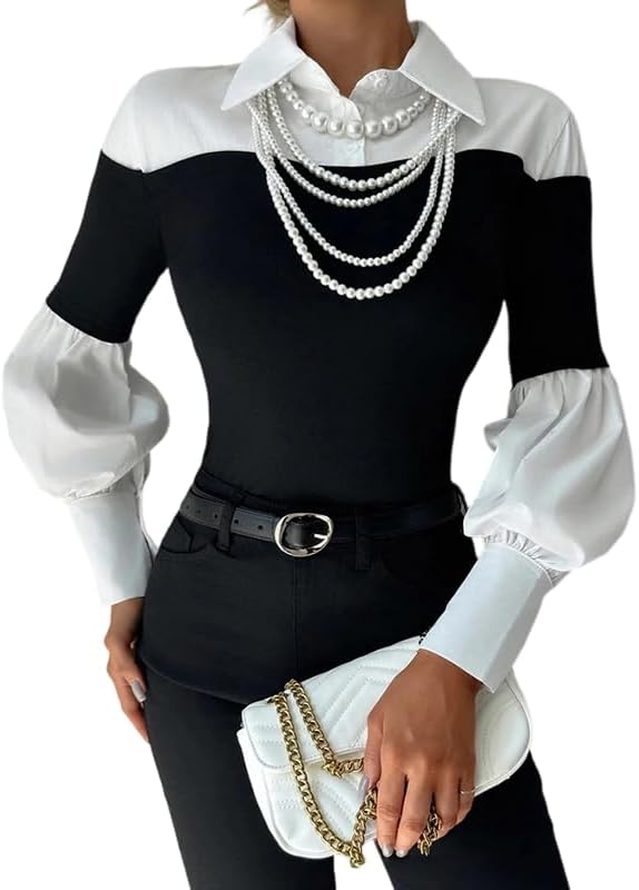 - Item model number : Women's Chic Black White Panel Blouse
