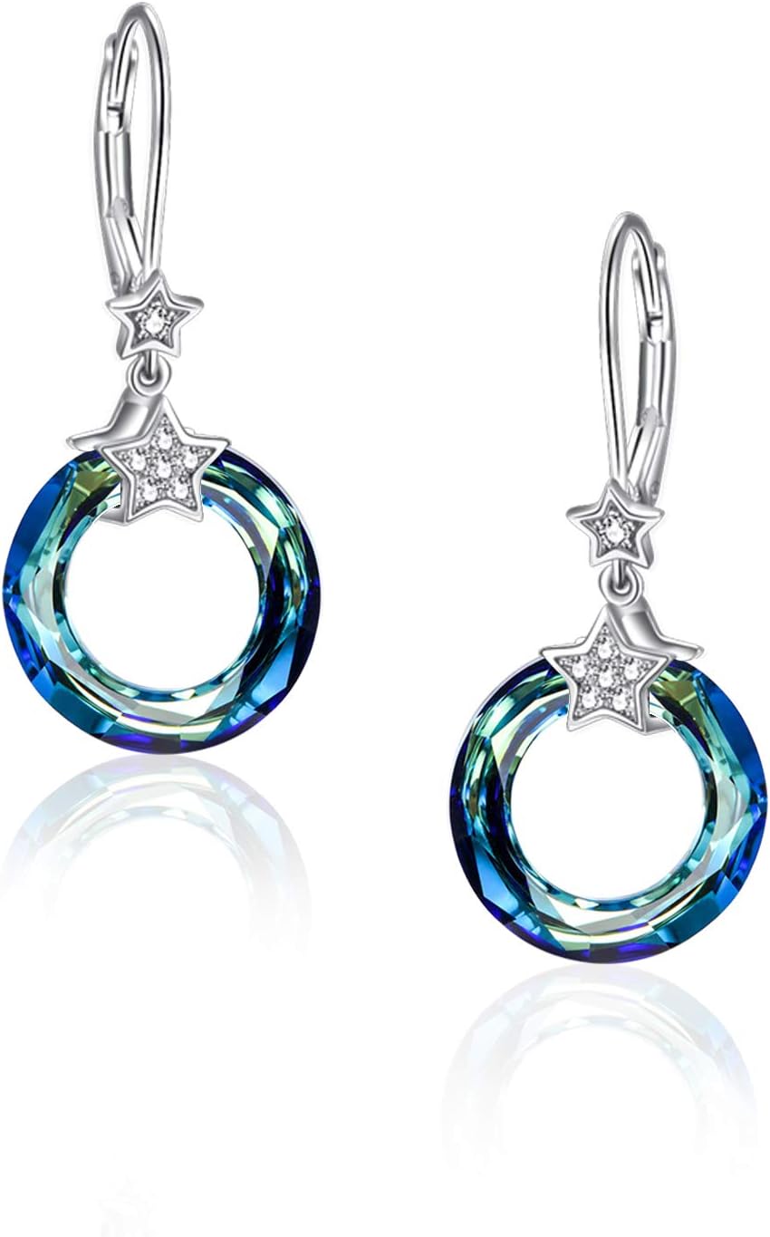 Volcano Rose/Star Crystal Sterling Silver Circle Dangle Leverback Earrings - Austrian Crystal Jewelry - Birthday Gifts for Women