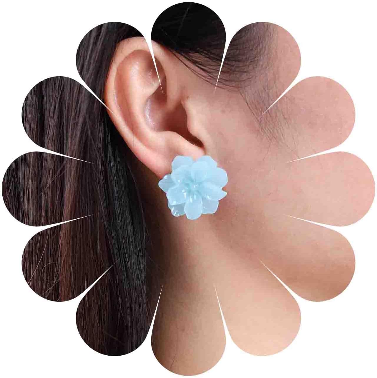 Vintage Acrylic Flower Earrings Blue Flower Stud Earrings Large Flower Petal Earrings Blue Rose Floral Earrings Jewelry for Women