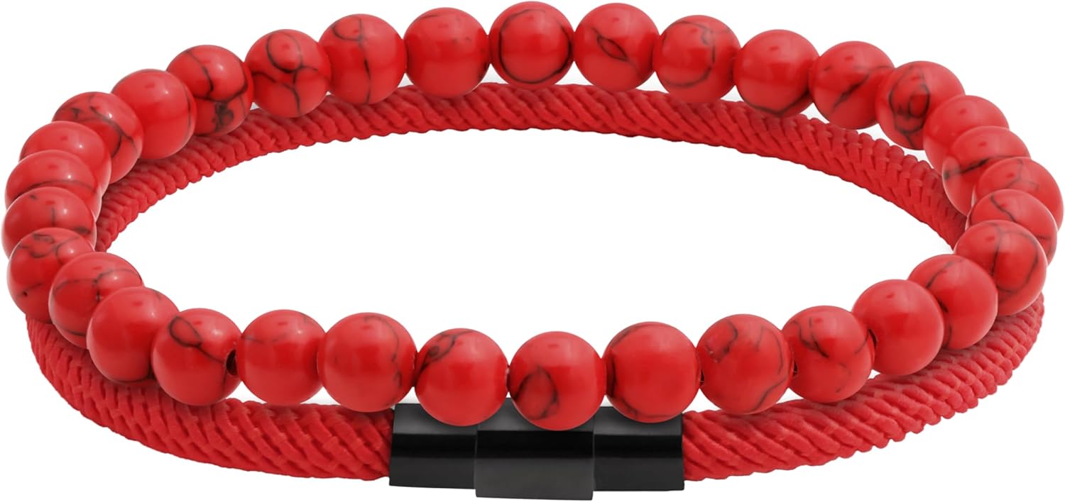 HAQUIL Lucky Red Beaded Paracord Bracelet | Vibrant Energy Charm with Black Accent, Unisex Design