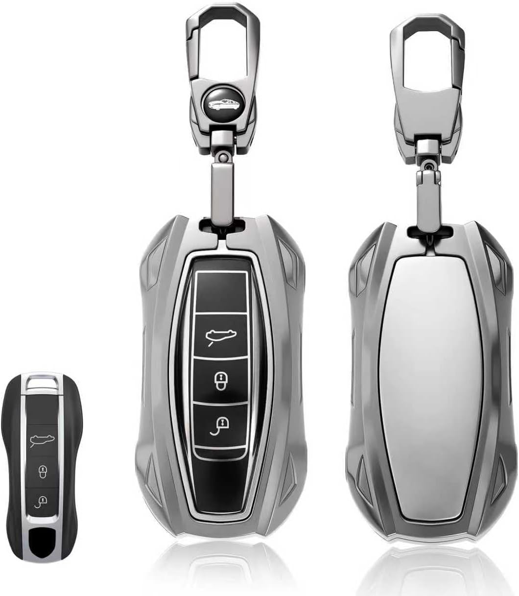 for Porsche Heavy Key Fob Cover with Keychain Zinc Alloy Metal Key Fob Case Compatible with Porsche 911 Cayenne Panamera Macan Boxster Panamera 718 (Square Buckle)