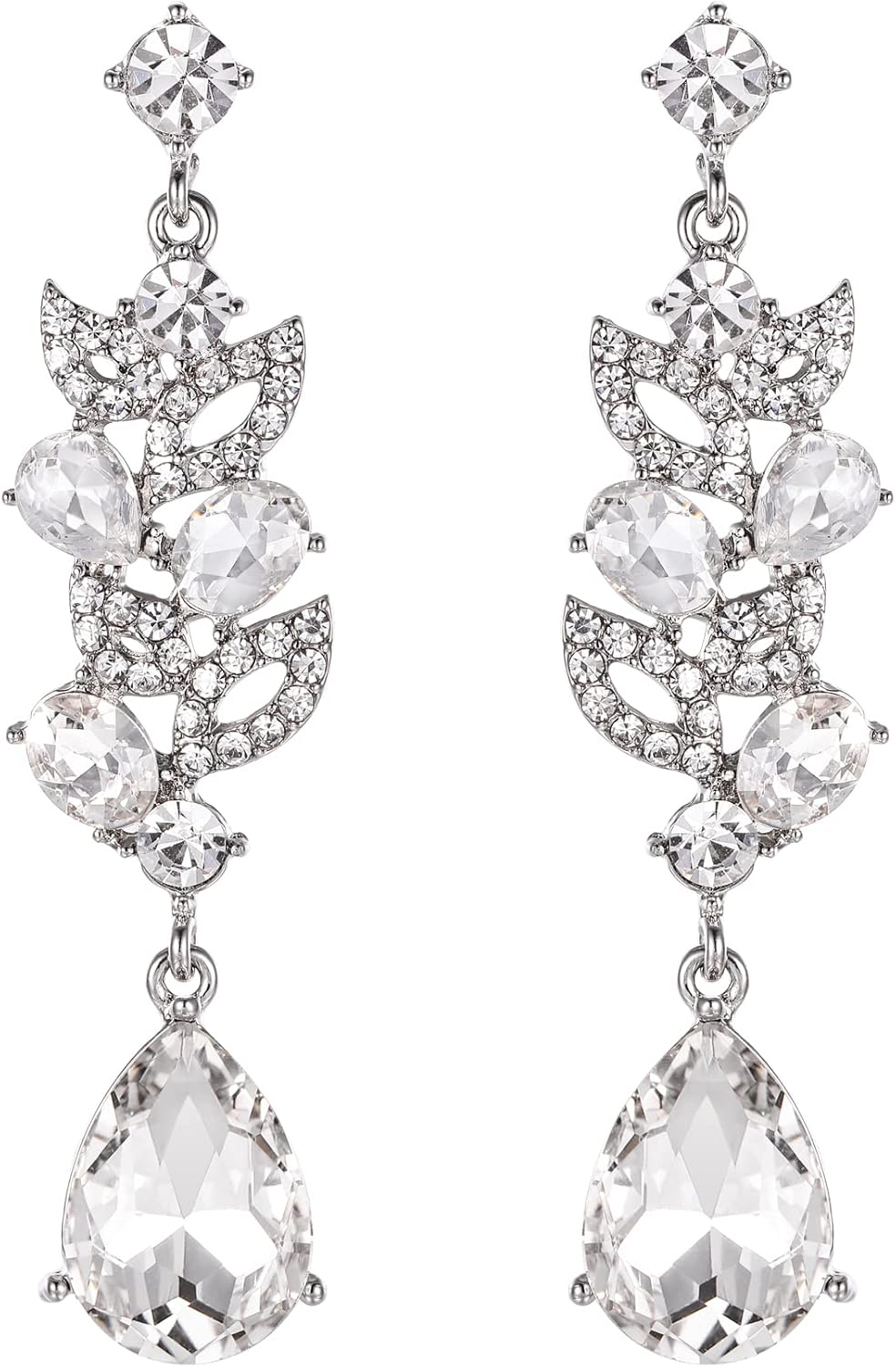 EVER FAITH Wedding Marquise Crystal Dangle Earring for Bridal, Cluster Leaf Art Deco Chandelier Pierced Earrings for Women