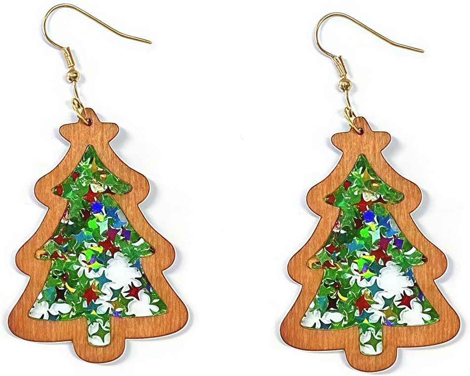 Christmas Tree Earrings for Women Cute Colorful Green Acrylic Christmas Tree Dangle Drop Earrings Lightweight Wooden Holiday Charm Earrings Christma Holiday Winter Party Jewelry
