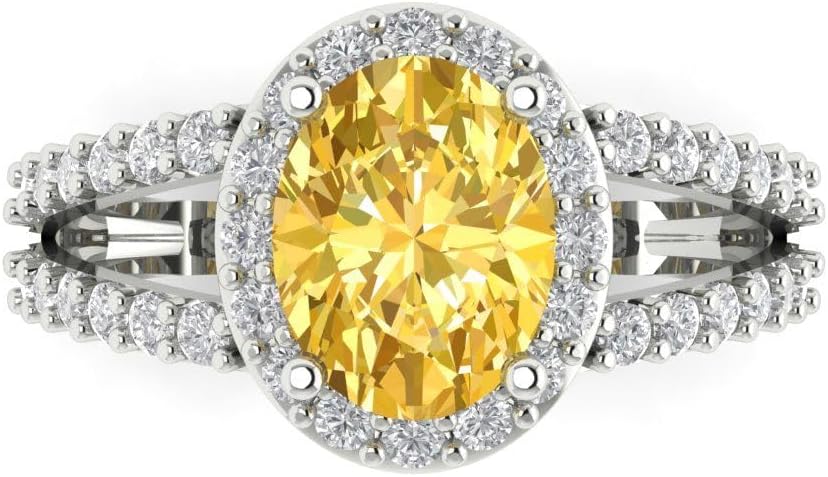 Clara Pucci 14K Solid White Gold 2.6 ctw Citrine Solitairewith Accents Ring for Women | Anniversary, Birthday Gift | 9x7mm Oval Cut