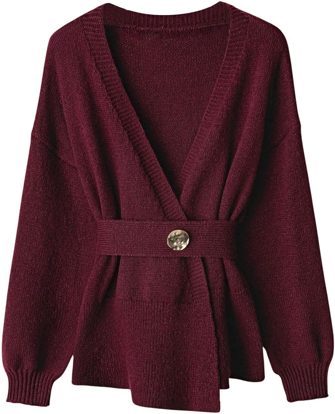 Verdusa Women's Tie Belted Wrap Cardigan Sweaters Old Money Knit Outerwear Fall Clothes