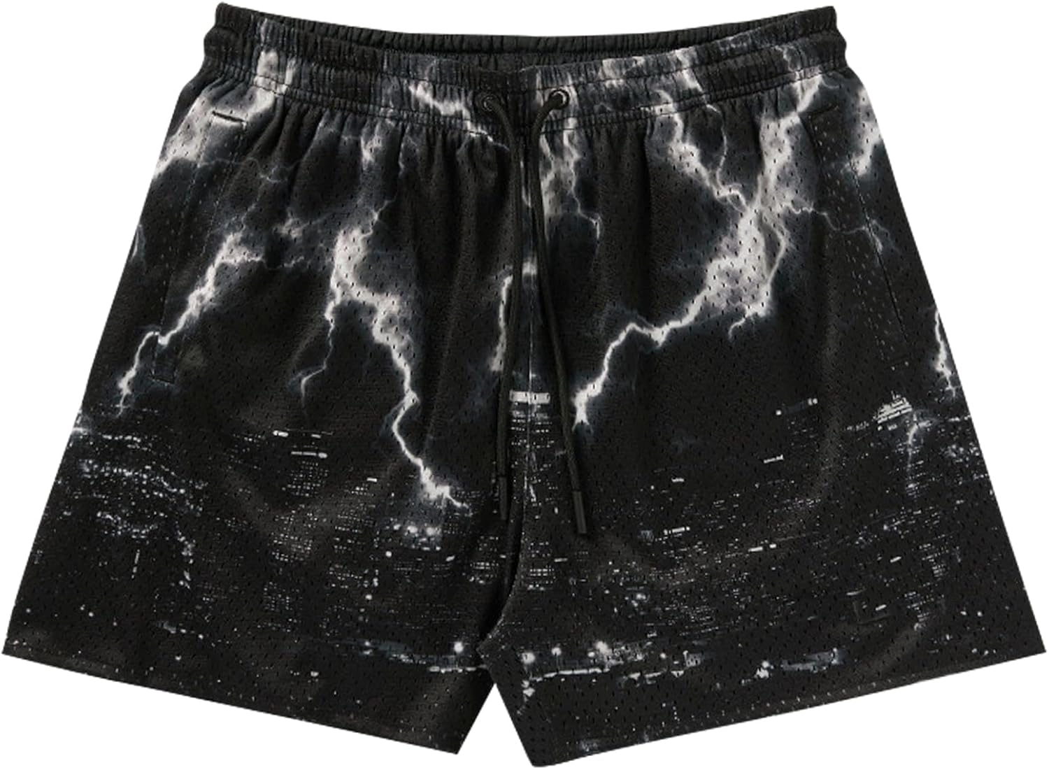Mens Graphic Shorts Basketball Mesh Skyline Casual Running Workout Cool Shorts with Pockets