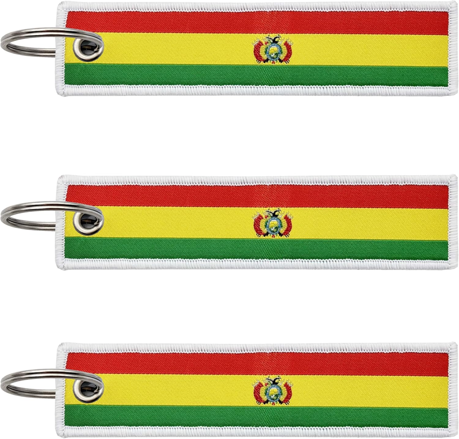 3 Pcs Bolivia Bolivians Country Flag Keychain,Woven label Key Chains for Car Keys,Fabric Key Chains Men and Women,Used for Various Decorations.