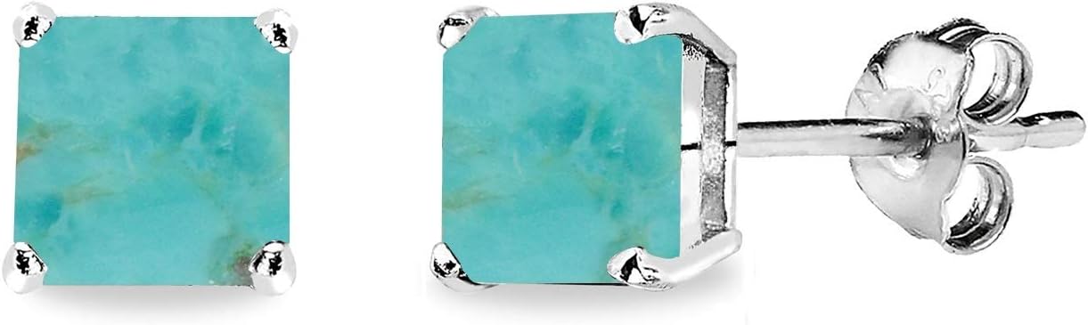 Sterling Silver Cabochon Stone 6mm Square Prong-Set Stud Earrings