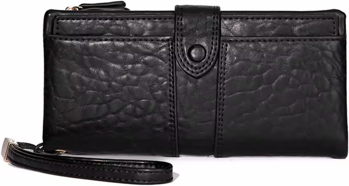 Women Vegan Leather Wristlet Wallet Clutch. Large capacity 20 Credit Card Holder 2 ID Photo window Coin Purse (Black)