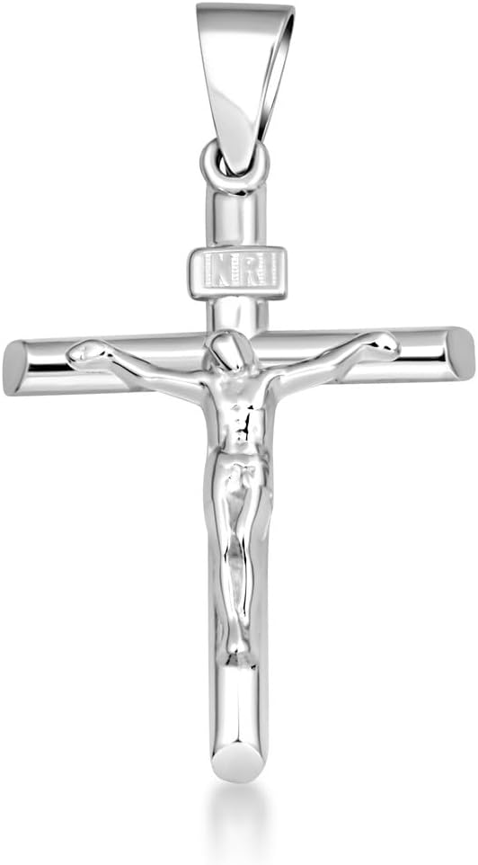 .925 Sterling Silver 1.17” INRI Crucifix Jesus Christ on the Holy Cross Pendant Necklace, Choice of Length