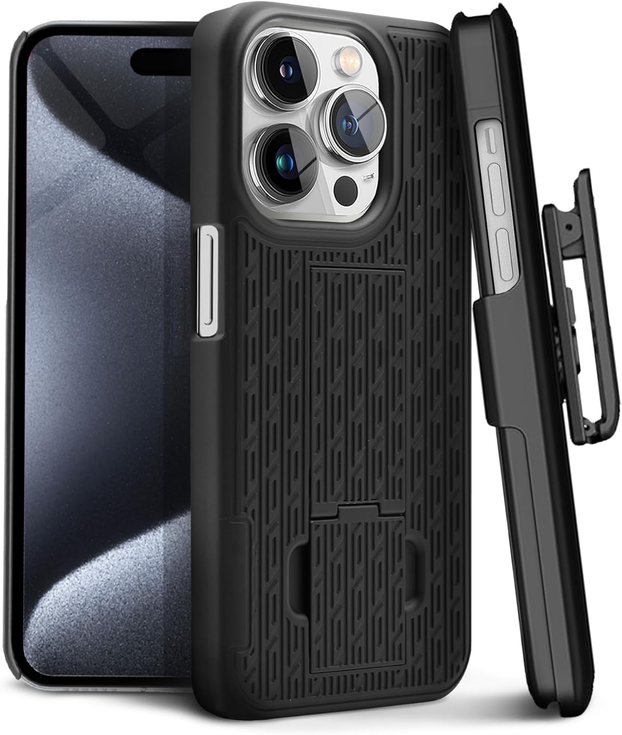 - 📱 READY FOR ANYTHING: iPhone 15 Pro case with clip a rugged design pairs a shock-absorbing TPU inner sleeve with a scratch-resistant Polycarbonate outer shell, giving your phone reliable, lightweight package. Protective Case for iPhone 15 Pro Holster