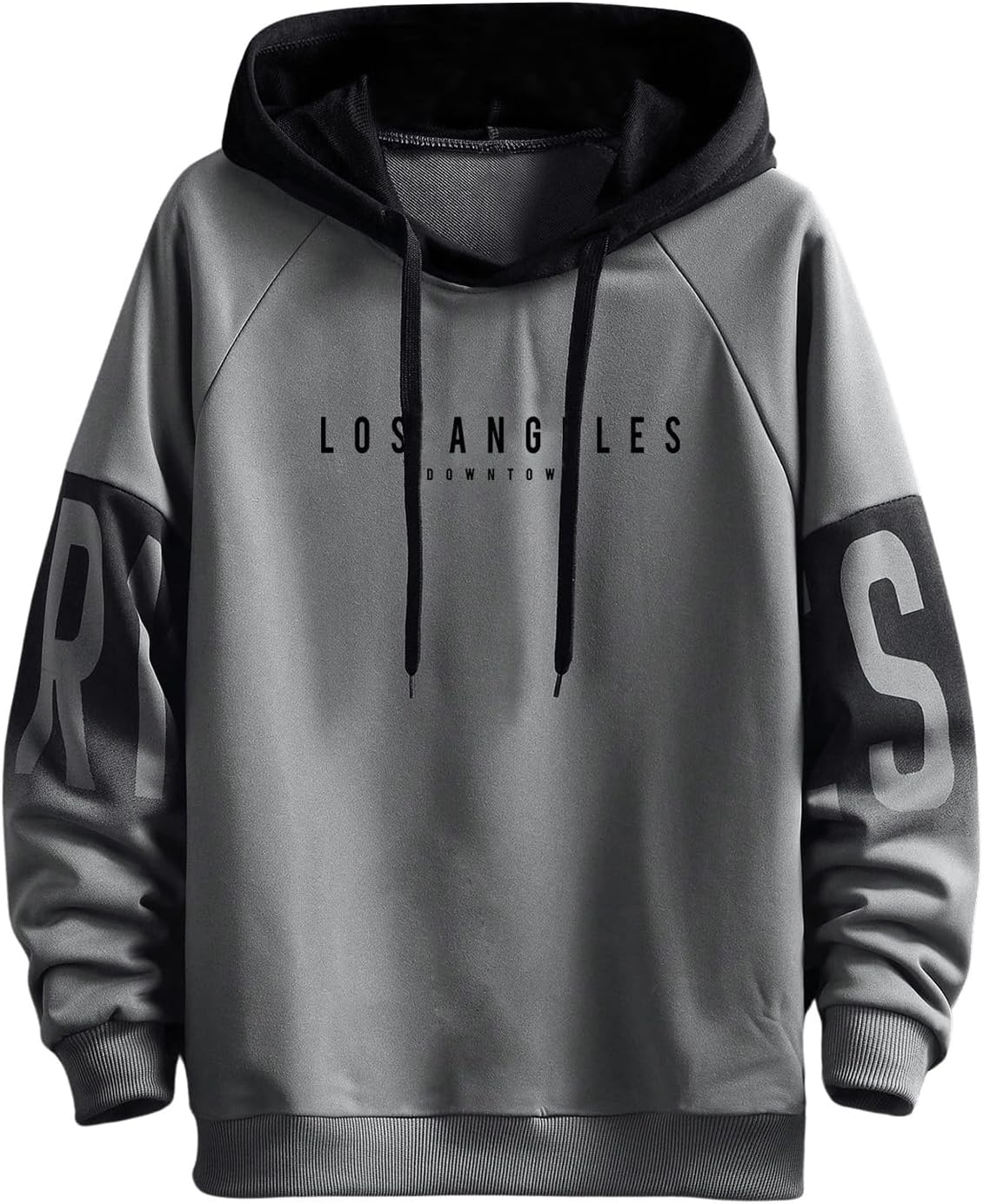 Verdusa Men's Letter Graphic Drawstring Hoodie Sweatshirt Colorblock Long Sleeve Pullover Tops Streetwear