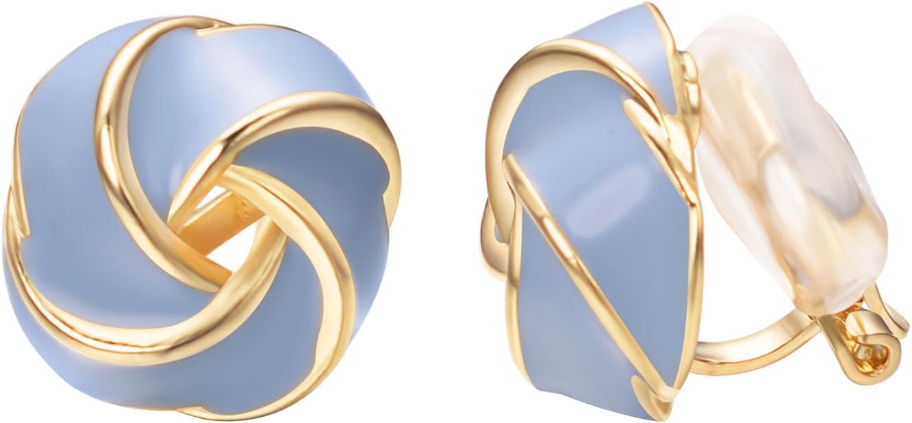 Yoursfs Knot Multicolor Clip on Earrings For Women Silver and gold Plated Large Non Pierced Floral Earrings