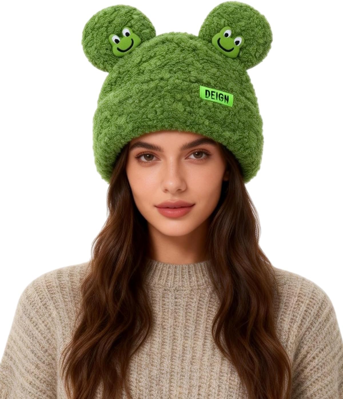 BOLLEY JOSS Womens Winter Beanies Cute Woollike Knitted Frog Hat Women Lady Girl Crochet Sheep Christmas Hats