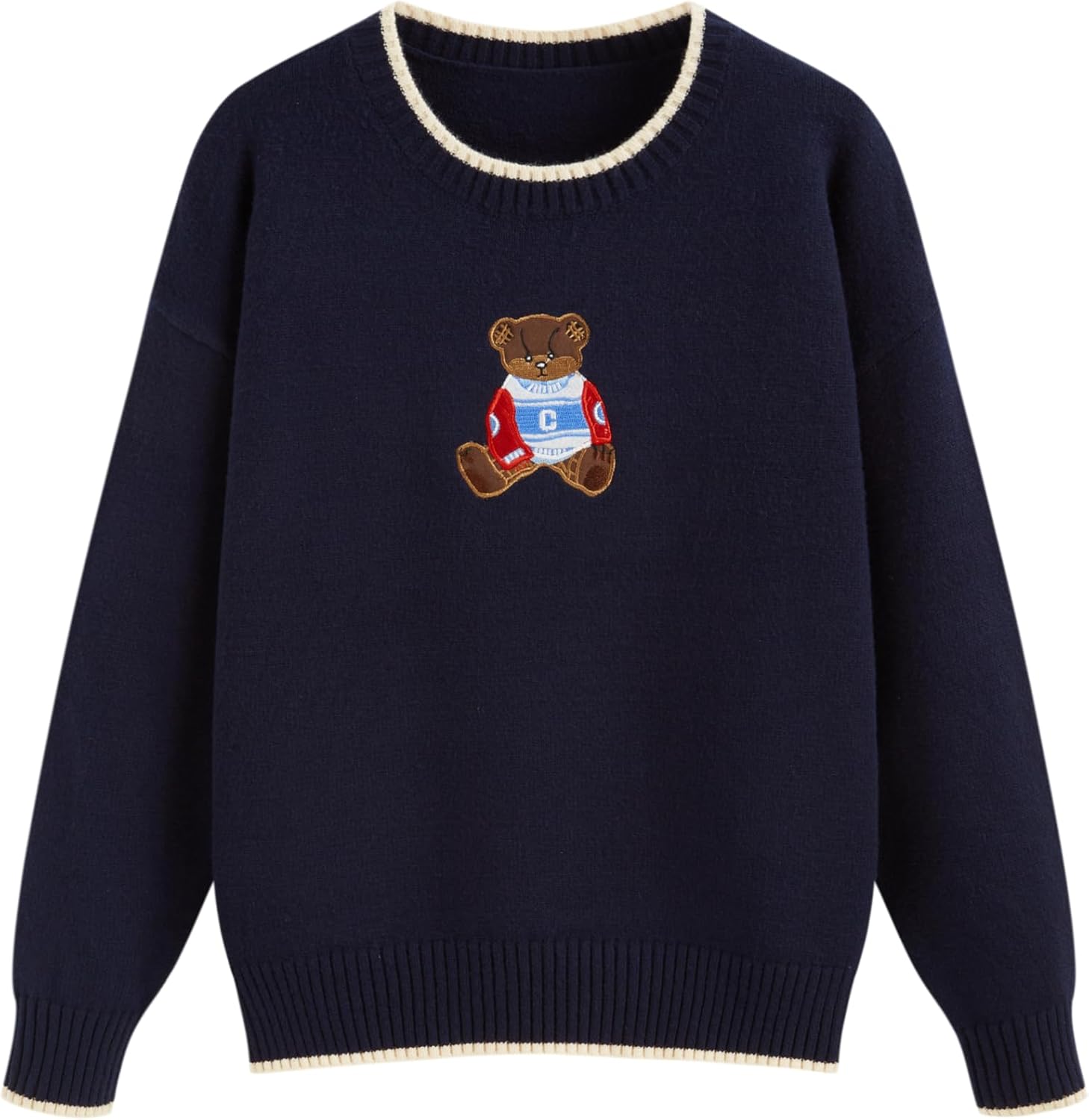 CIDER Women's Fall Sweaters Long Sleeve Cute Sweaters Bear Graphic Crewneck Soft Knit Casual Cropped Pullover