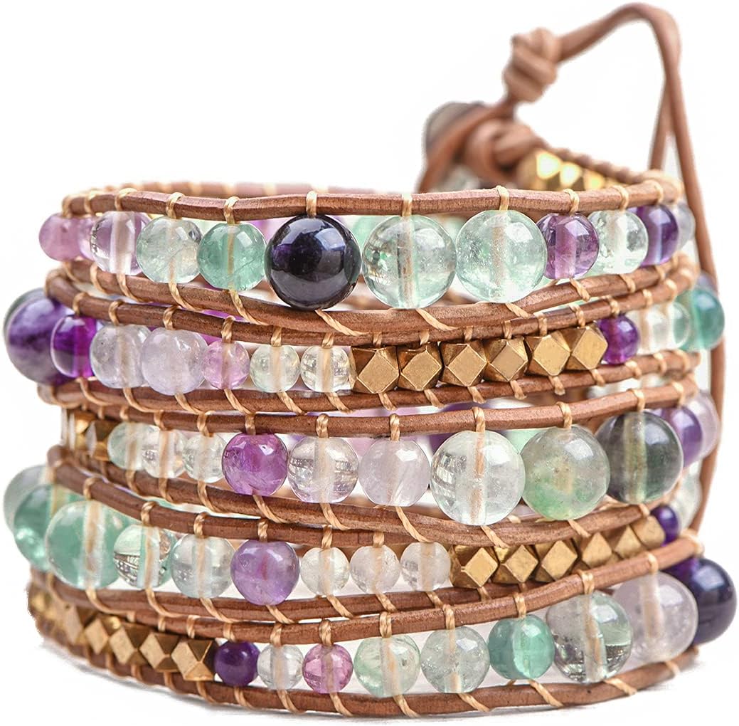 globi Natural Stone Wrap Bracelet For Women/Men | Adjustable Multilayer Genuine Leather Boho Handmade Beaded Bracelet