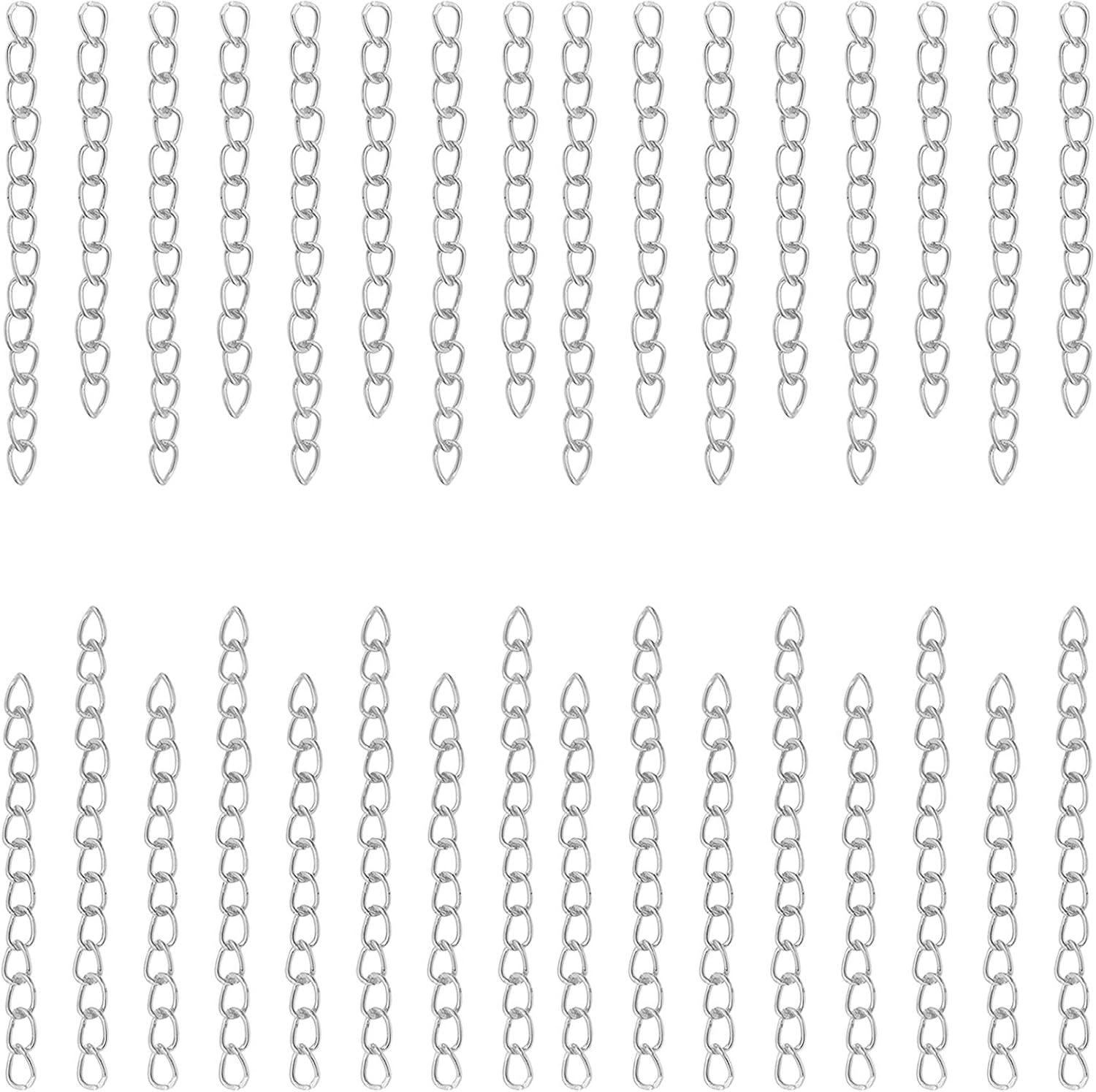 - Package Includes:comes with 100Pcs chain extension tails in two sizes,they are 5cmx4mm,7cmx4mm,50Pcs in each size,different lengths meet different needs,great for your DIY jewelry making necklaces Bracelet,Anklets,key chain,etc.