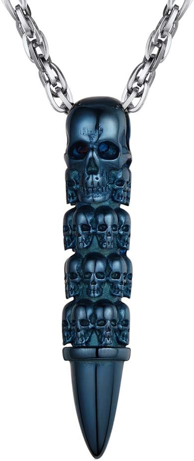 Skull Necklace for Men, Stainless Steel Skeleton Pendant Necklaces, Retro Hip Hop Punk Style, Gothic Halloween Jewelry, Come with Box