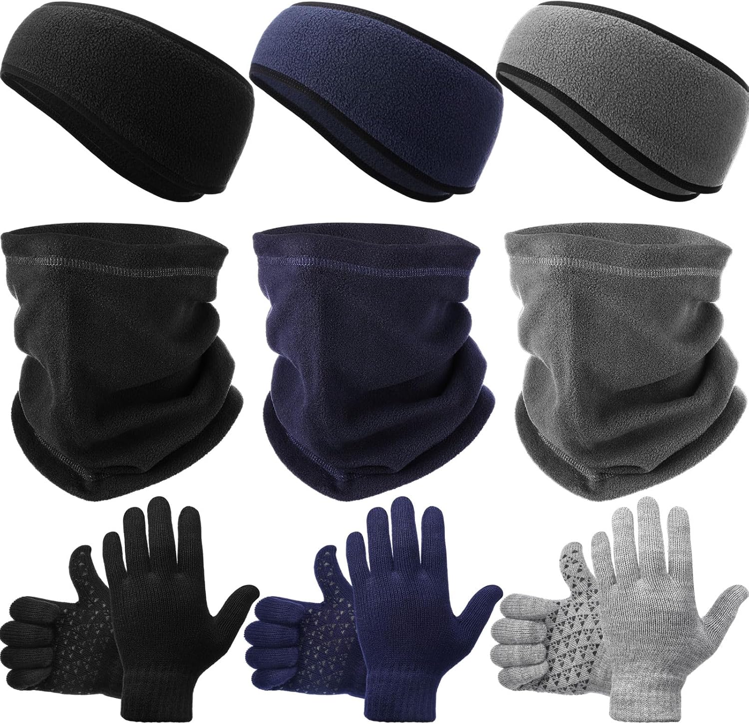 9 Pcs Ear Warmer Headband Warmer Face Mask Fleece Neck Gaiter with Drawstring Winter Knit Gloves for Men Women Adult