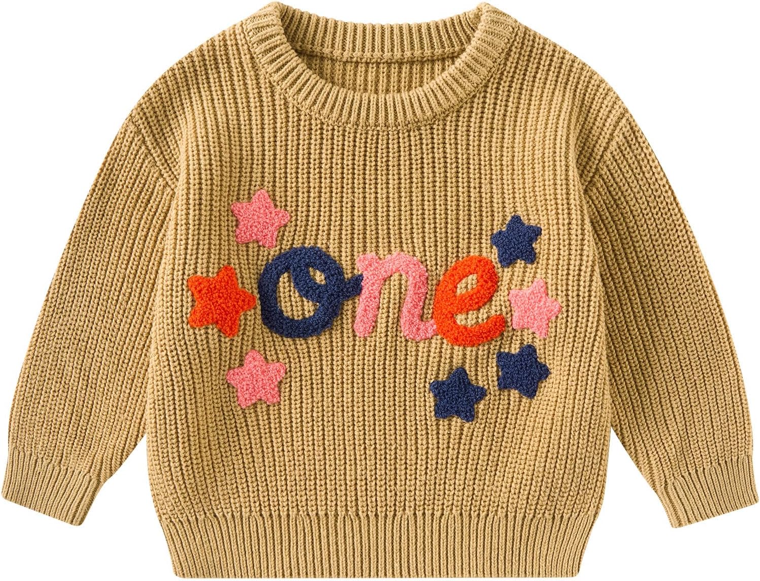 Kids4ever Toddler Baby Girl First Birthday Knit Sweater Cute Letter Embroidery Pullover for Infant Winter Fall for 6M-4Y