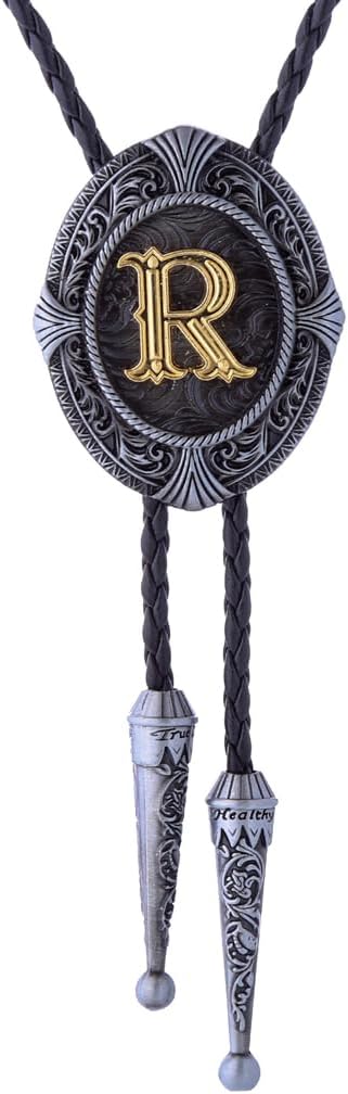 HUABOLA CALYN Vintage Bolo tie for Men Western Cowboy Native American Initial Letter ABCDJMR to Z Costume Bolo ties for Women