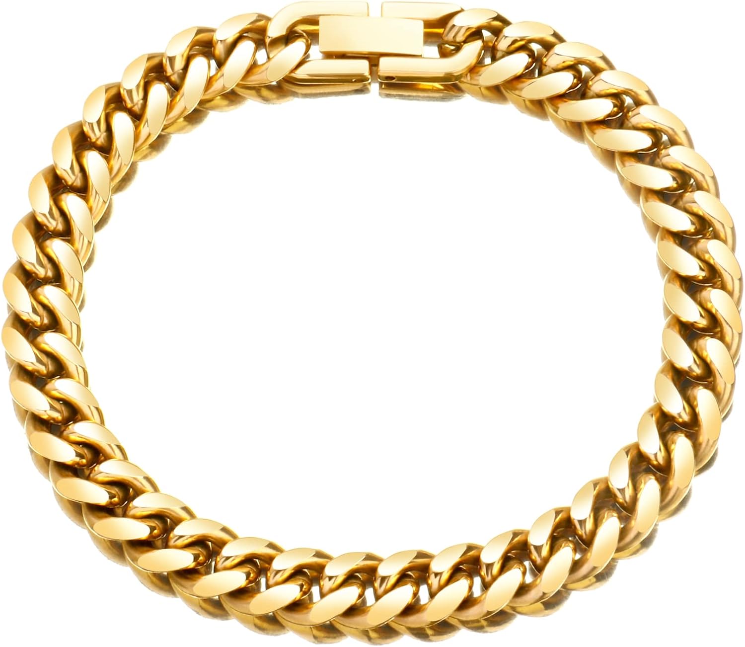 Gold Diamond-Cut Miami Cuban Link Chain Bracelets for Men Women, 8mm 18K Gold Plated Stainless Steel Curb Chain Bracelet