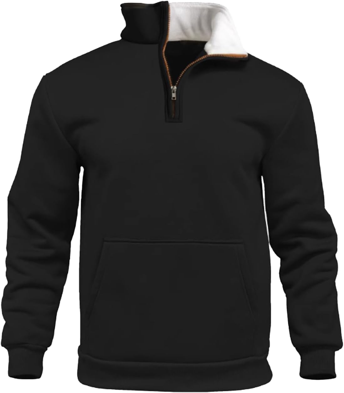 Mens Heavyweight Half Zip Pullover Sweatshirt Winter Warm Fleece Loose Fit Comfortable Hoodies with Pocket