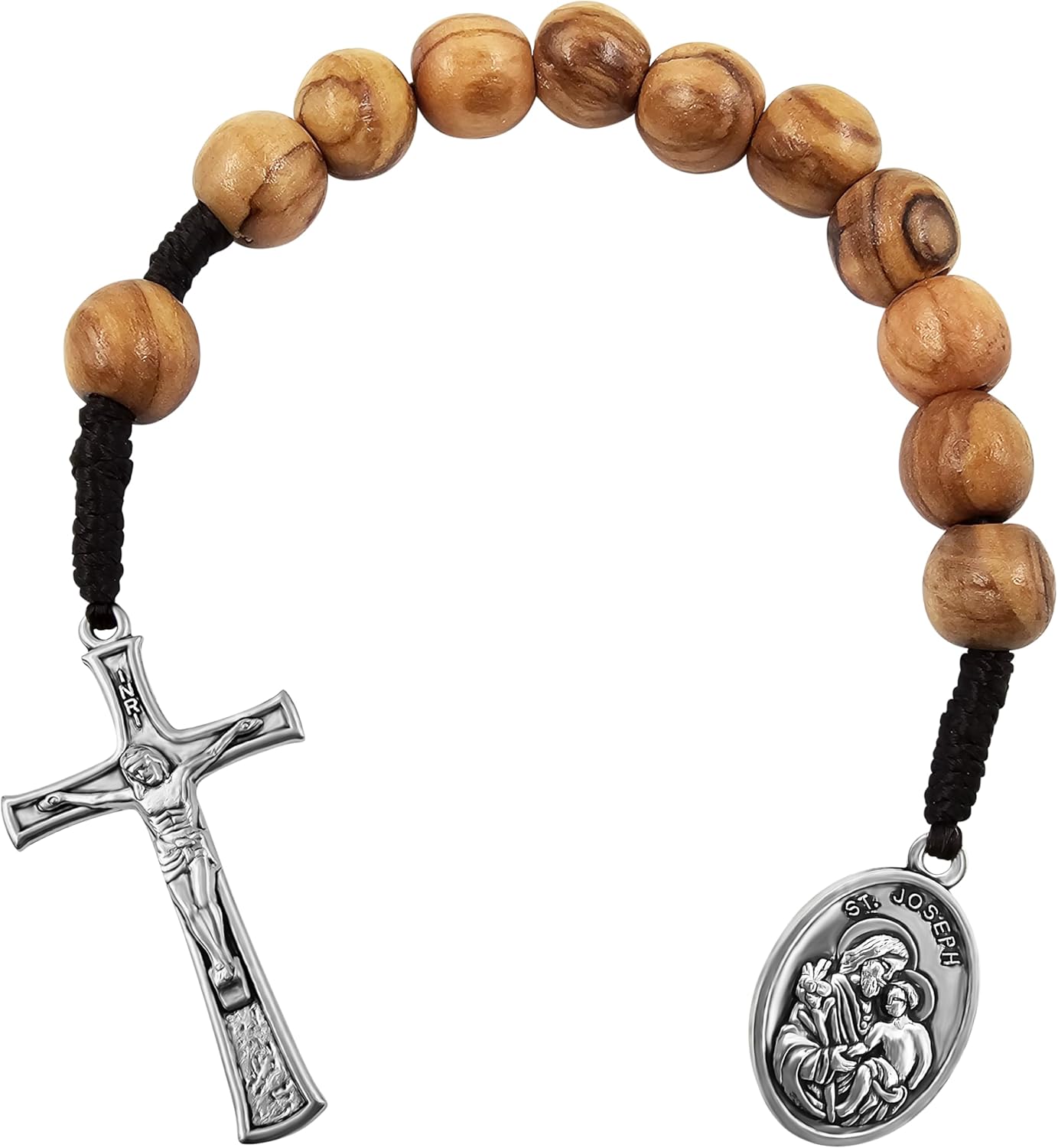 TALISMAN4U Sacred Heart of Jesus Miraculous Medal One Decade Pocket Rosary 10 mm Olive Wood Prayer Beads Open Style Tenner Rosaries for Men Women Handmade Catholic Gift Linen Rosary Pouch