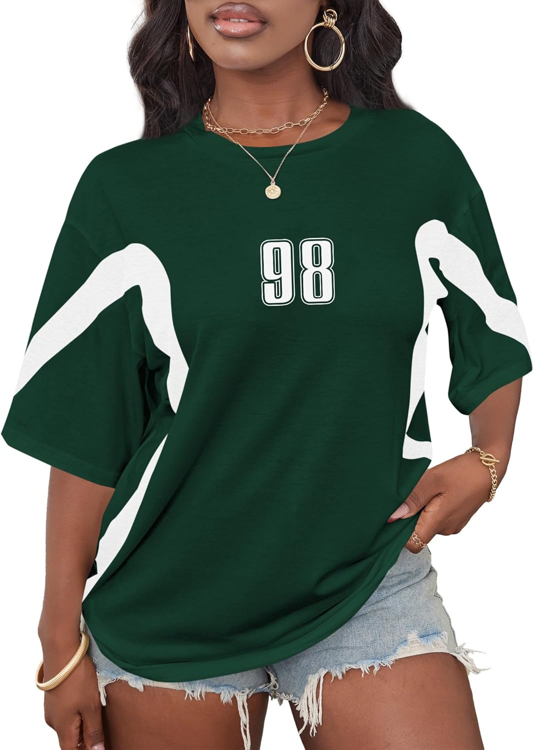 Hilinker Womens Oversized Graphic Tshirts Casual Summer Tees Short Sleeve Color Block Tops