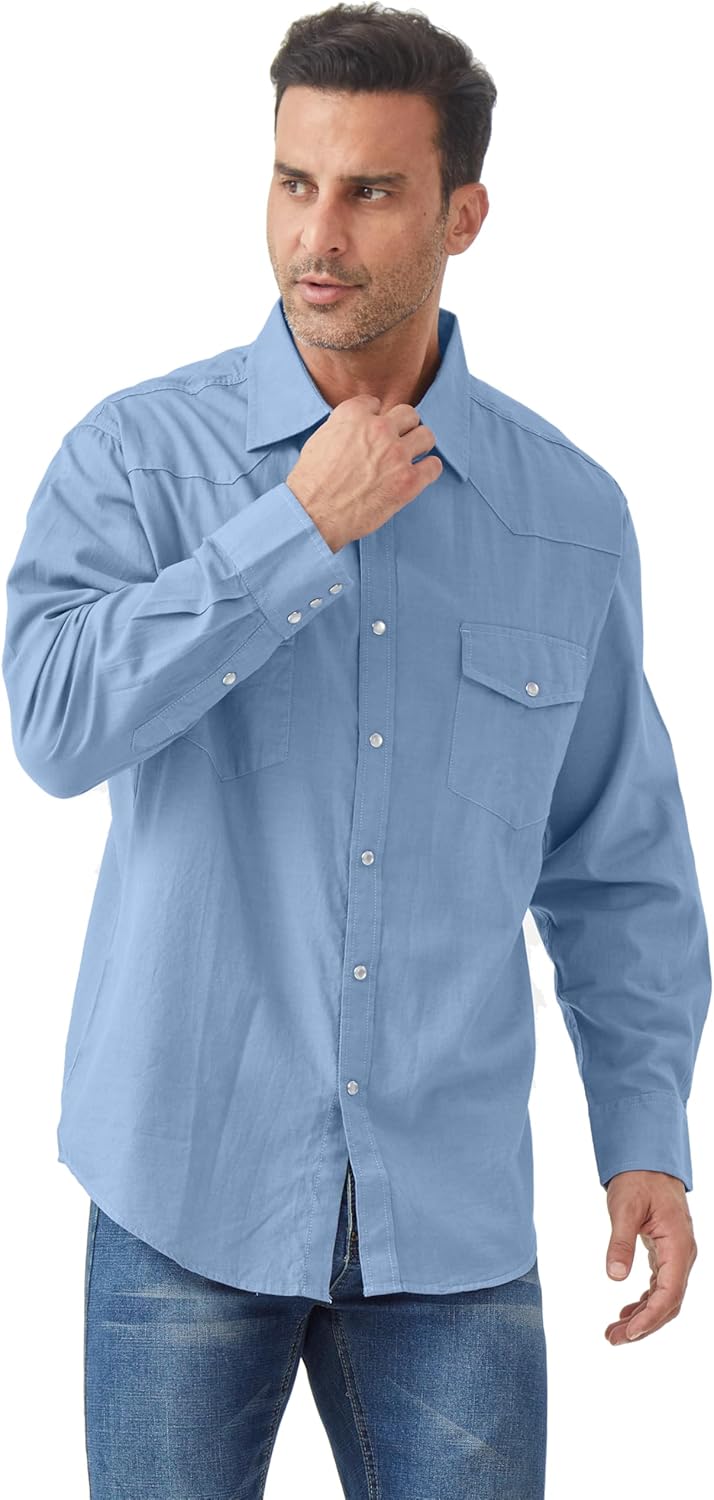 Tuna Men's Denim Cowboy Pearl Snap Casual Western Button Down Up Long Sleeve Work Shirts