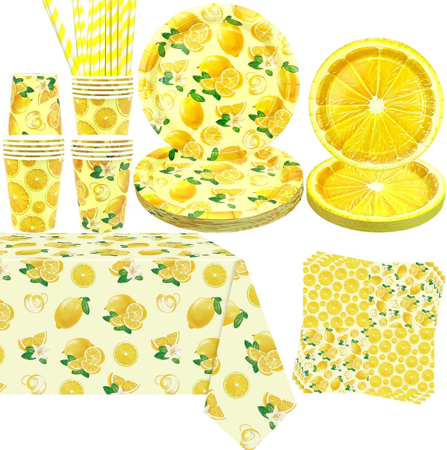 KEFAN Lemon Birthday Party Decorations, Lemon Theme Party Tableware Supplies including Plates, Cups, Napkins, Tablecloth, Serves 20 (20)