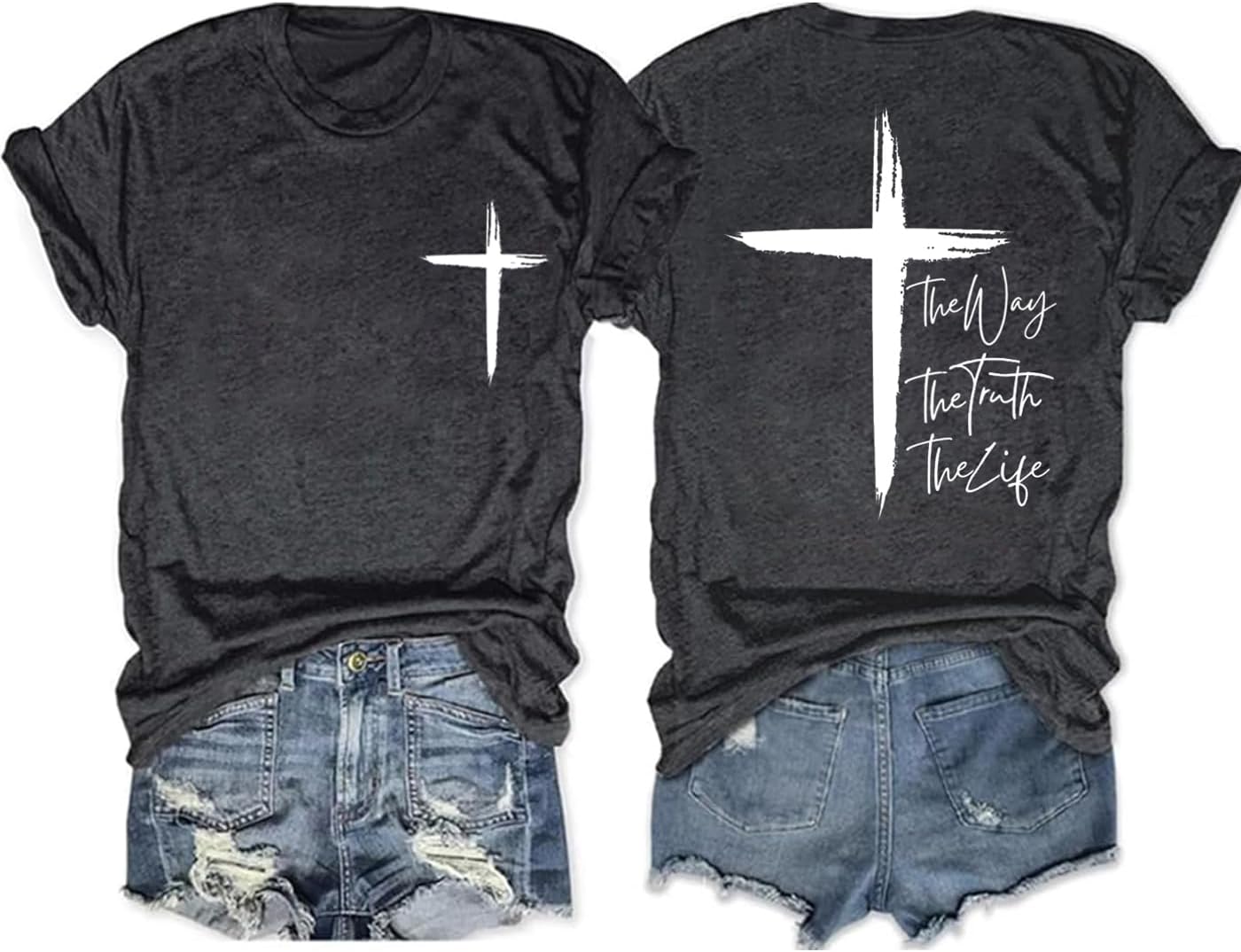 Christian Shirts for Women Faith Bible Verse Cross Graphic Tee Top Inspirational Jesus Short Sleeve Casual T-Shirt