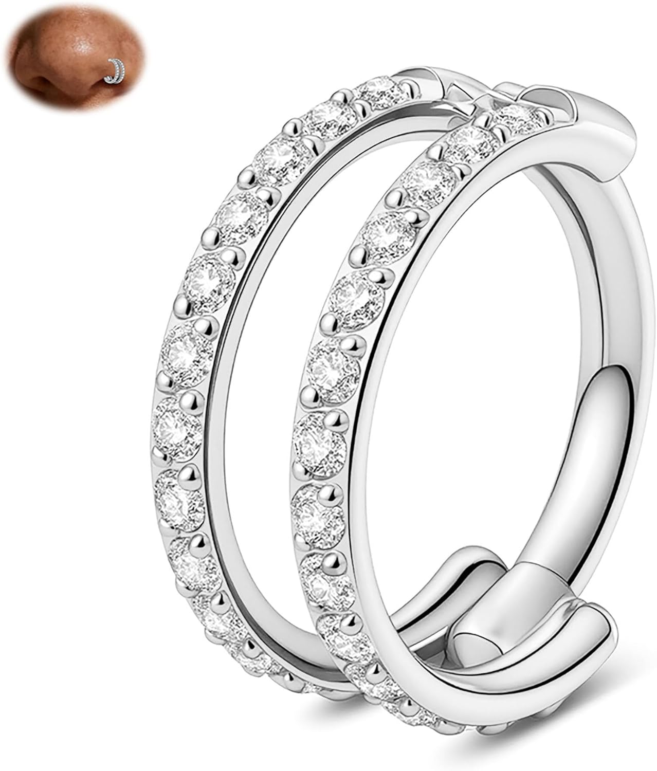 G23 Titanium Cartilage Earring Hoop Conch Piercing Jewelry 16G CZ Double Hoop Nose Ring Hinged Clicker Septum Rings for Women Men