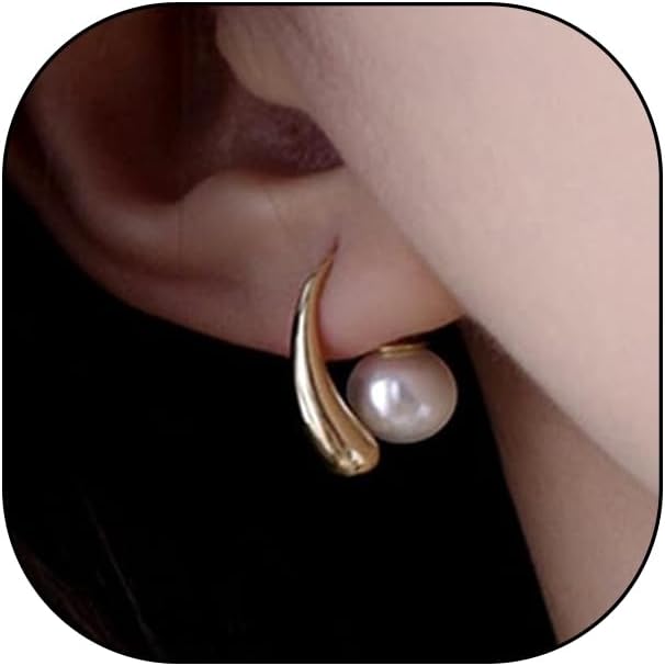 Pearls Water Drop Earrings for Women,14K Gold Teardrop Pearls Dangle Statement Earrings Dainty Irregular Hoop Earrings Accessories Gifts