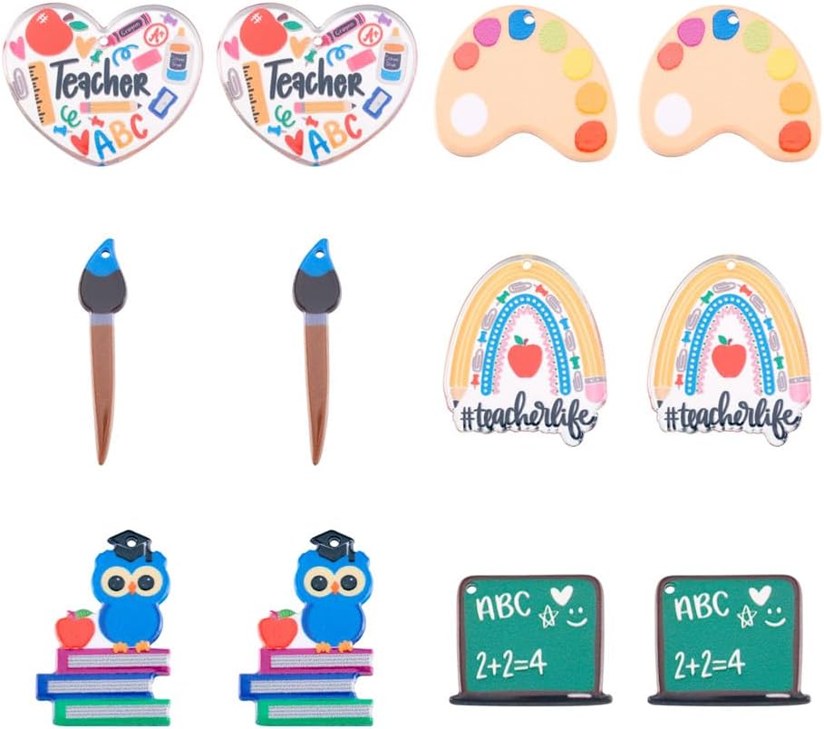 KISSITTY 12Pcs Study Theme Acrylic Charms Board Book Acrylic Pendants Back to School Pendants for DIY Teacher Necklace Earring Key Chain Jewelry Making