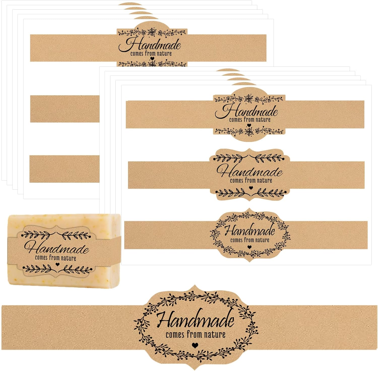 Brown Kraft Soap Labels 120pcs Handmade Soap Wrap Tags Paper Soaps Sleeves Covers Tape for Homemade Soap Packaging Supplies